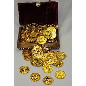 Der Renner auf jeder Piratenparty. Goldmünzen mit verschiedenen Motiven, für Piratenschatzkisten, die Schnitzeljagd, und allen anderen gefährlichen Abenteuern. Auch sehr gut für jeden Poker- und Roulettabend geeignet. Piratengoldmünzen aus Kunststoff OHNE Schokoladenfüllung. Hinweis: "Nicht für Kinder unter 3 Jahren geeignet."